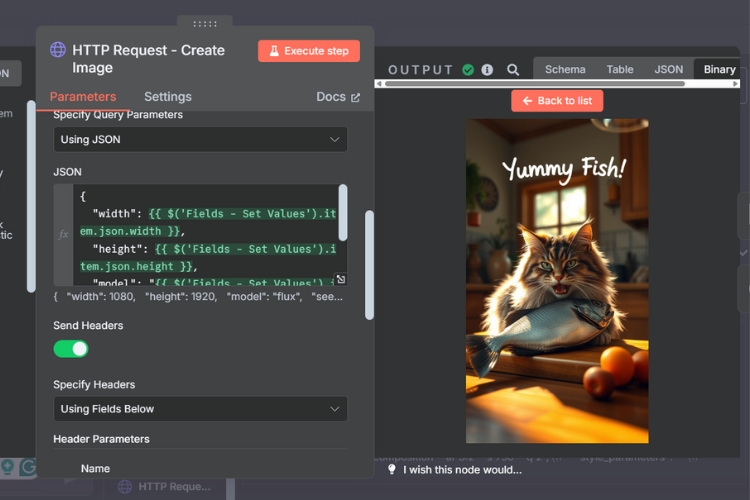 - Then, we use an HTTP node to fetch the result so you can preview the image.